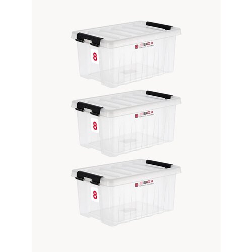 Контейнер для хранения мелочей пластиковый, ящик с крышкой для порошка, органайзер для игрушек, емкость 8 литров, цвет прозрачный белый, набор 3 шт