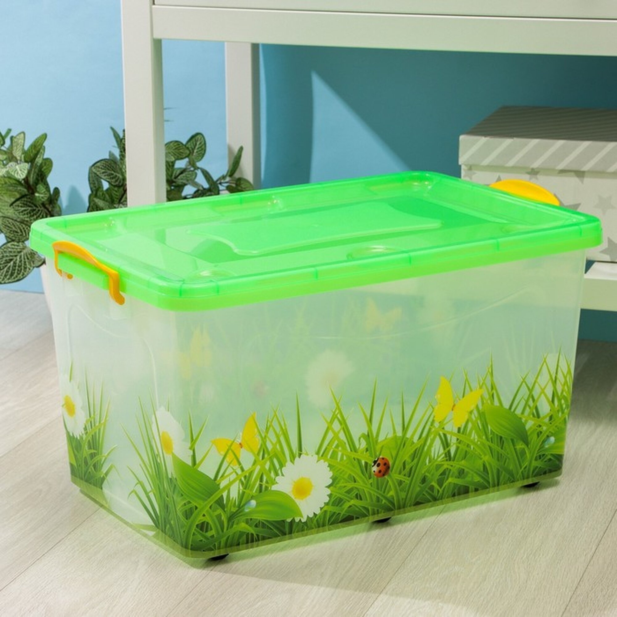 Купить Контейнер для хранения с крышкой «Hide box. Трава», 50 л, 60×38×31 см, на колёсиках, микс с доставкой по всей России.