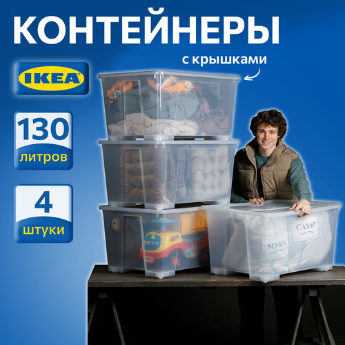 Контейнер для хранения с крышкой икеа самла, 130 л, 78х56х43 см, 4 шт, прозрачный: сравнение цен, характеристики, фото, актуальное наличие и цены.