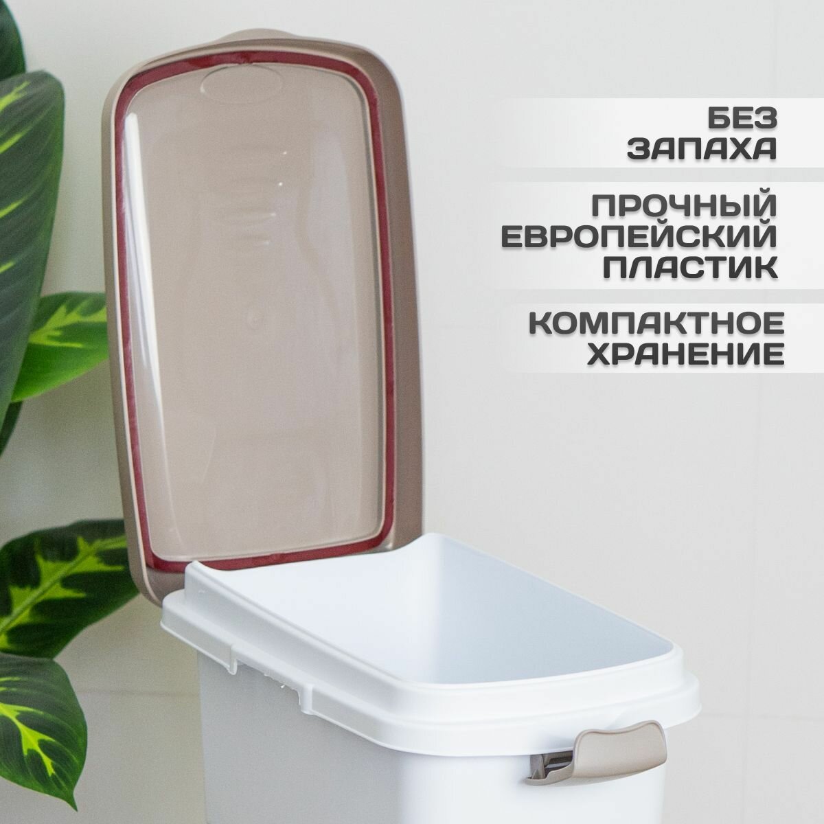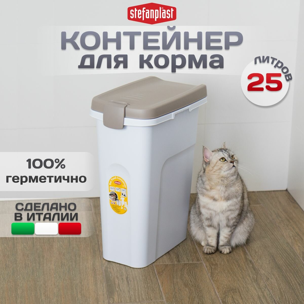 Контейнер для хранения сухого корма домашних животных идеально подходит для любого владельца питомца. Объёмом 25 литров. Вмещает в себя до 10 кг корма. Эта емкость обеспечивает надежное хранение корма и защищает его от воздействия влаги, насекомых и запахов. Контейнер имеет пластиковую крышку, которая плотно закрывается, чтобы сохранить свежесть и качество корма.