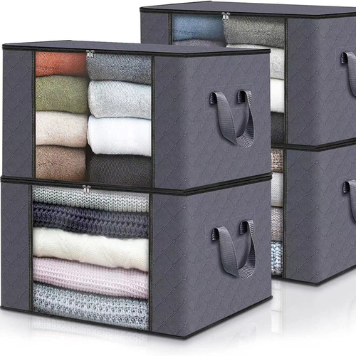 [Усиленные ручки] Широкие ручки сумок для хранения одежды дважды прошиты толстым тканем, достаточно прочные, чтобы вытаскивать из под кровати и перемещать по дому, надежные для длительного использования.