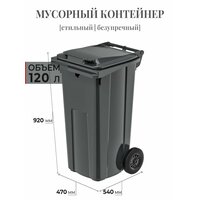Контейнер для мусора 120 л на колесах, серый, новый: сравнение цен, характеристики, фото, актуальное наличие и цены.