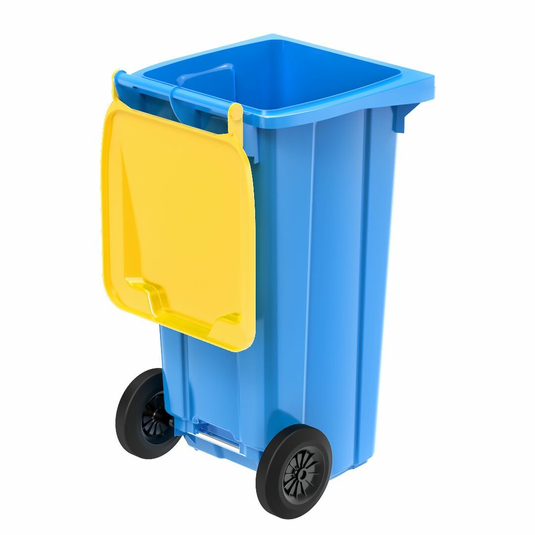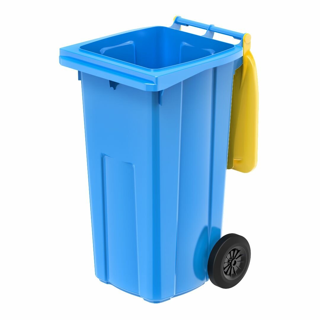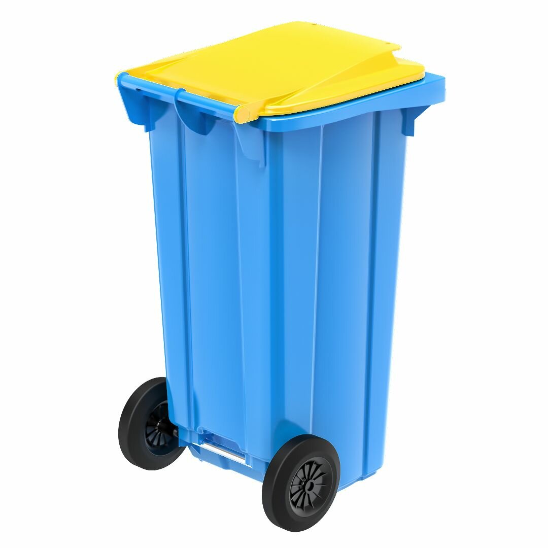 Контейнер для мусора 120 л на колесах, синий с желтой крышкой: сравнение цен, характеристики, фото, актуальное наличие и цены.