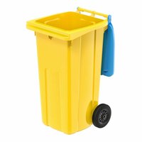 Контейнер для мусора 120 л на колесах, желтый с синей крышкой