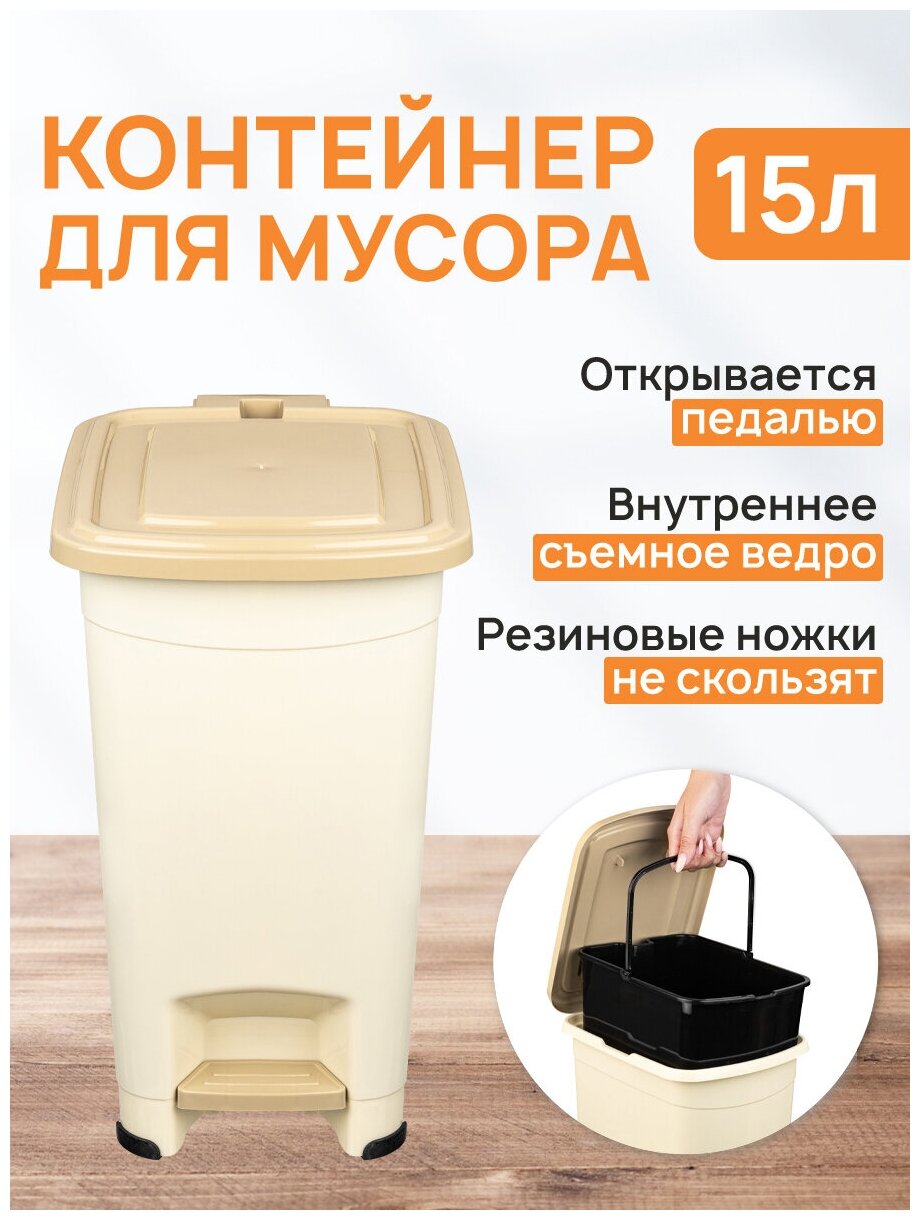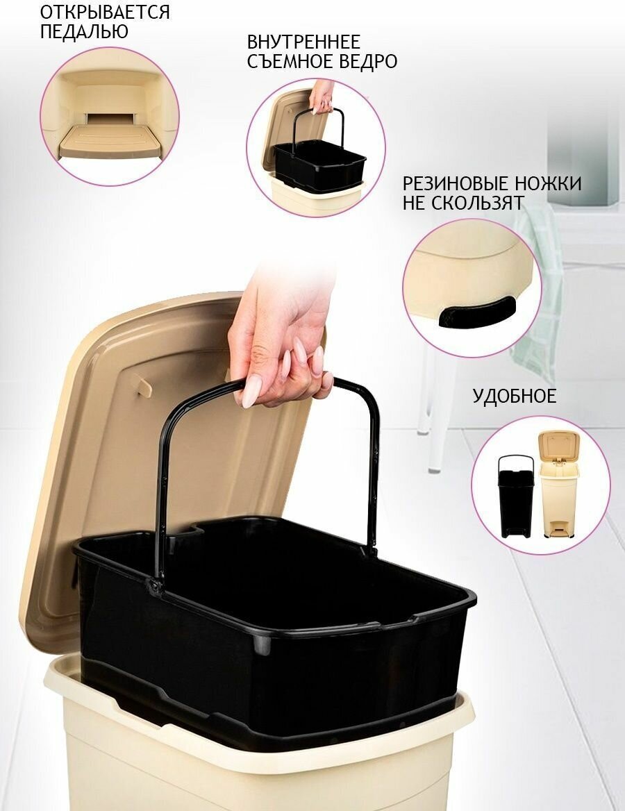 Контейнер для мусора 15 л 31х23,5х39,5 см El Casa Слим, слоновая кость, с педалью, с ведром: сравнение цен, характеристики, фото, актуальное наличие и цены.