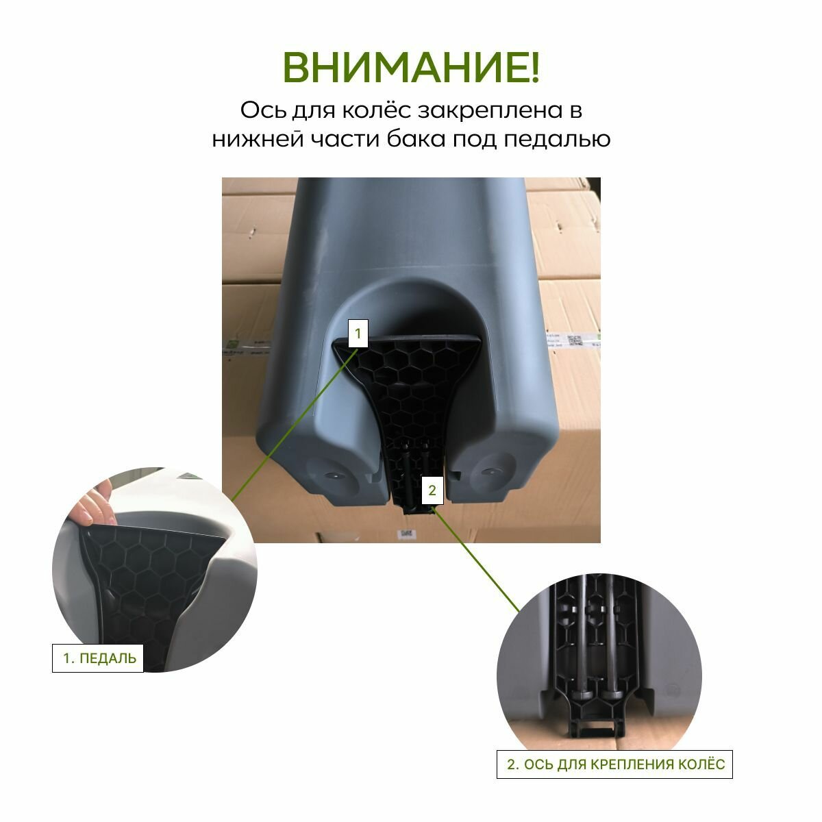 - Удобная педаль для открытия крышки без рук.
