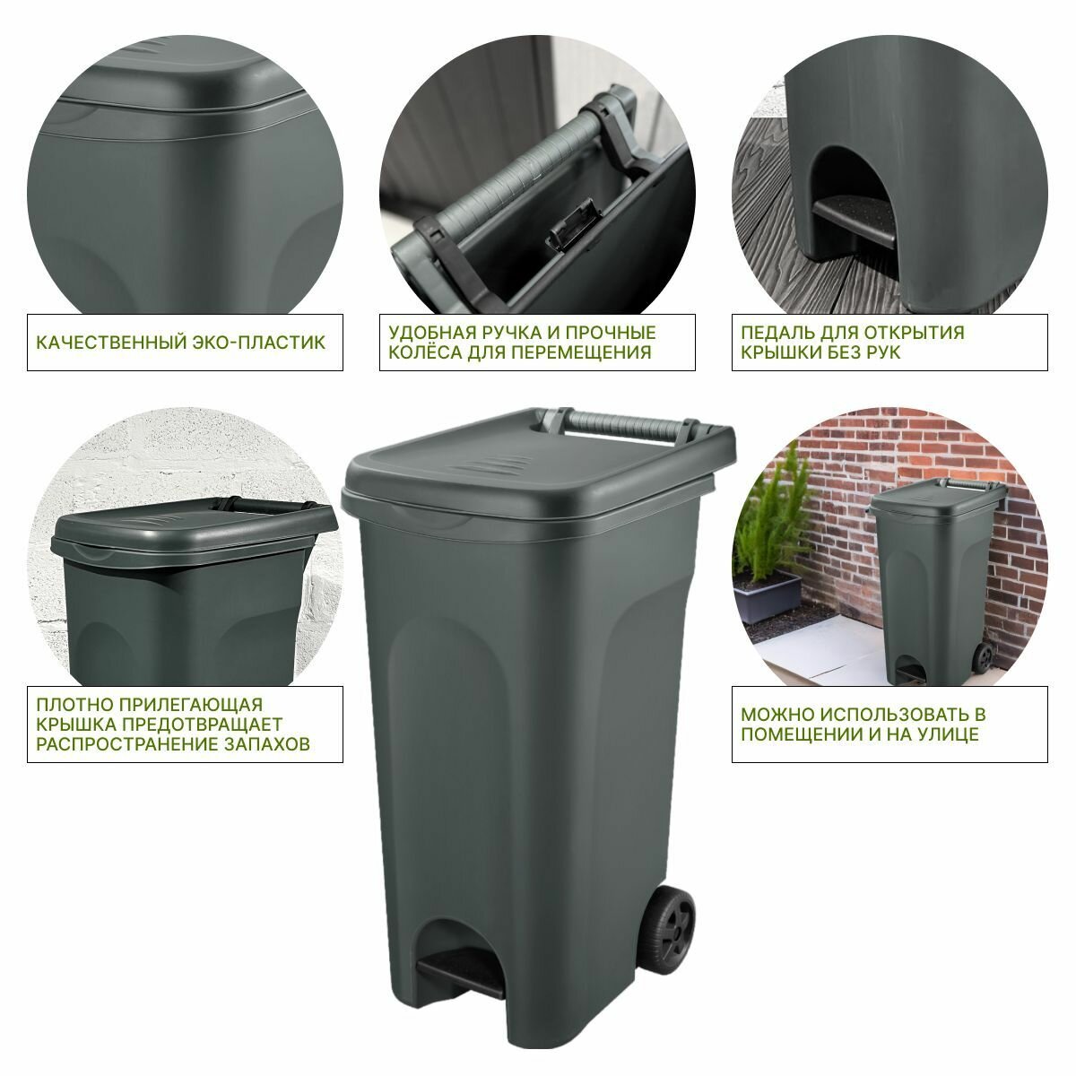- Плотно прилегающая крышка предотвращает распространение запахов.