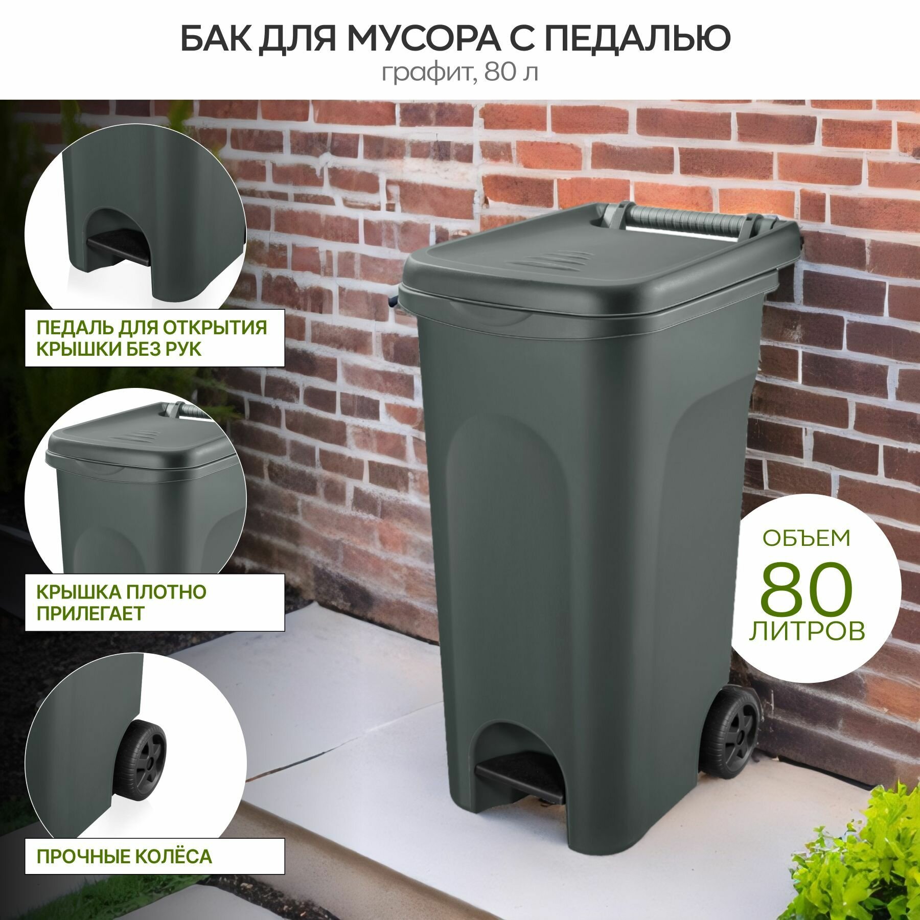 Бак для мусора 80 л с педалью графит: сравнение цен, характеристики, фото, актуальное наличие и цены.