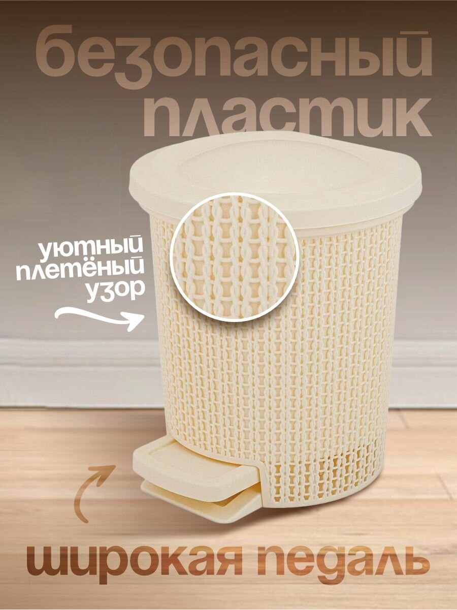Мусорное ведро Spin&Clean из коллекции Soul с педалью, объемом 6 л, идеальное решение для создания чистоты и порядка. Руки всегда останутся чистыми, ведь для открывания крышки ведра есть удобная педаль. Крышка скрывает мусор, предотвращает распространение запахов, а также ограничивает доступ домашних животных к содержимому контейнера. Не составит труда очистить мусорный контейнер Spin&Clean, внутри расположено внутреннее ведро с удобными ручками, его можно вынуть, при необходимости вымыть, спрятать края пакета. Внешний корпус контейнера для мусора Soul имитирует фактуру вязания, благодаря чему создает в пространстве атмосферу домашнего уюта. Высокое качество пластика обеспечивает долгий срок службы контейнера. Контейнер может использоваться как в помещении, так и на улице. Легкость и прочность мусорного ведра Spin&Clean Soul оптимально решают проблему сбора отходов.