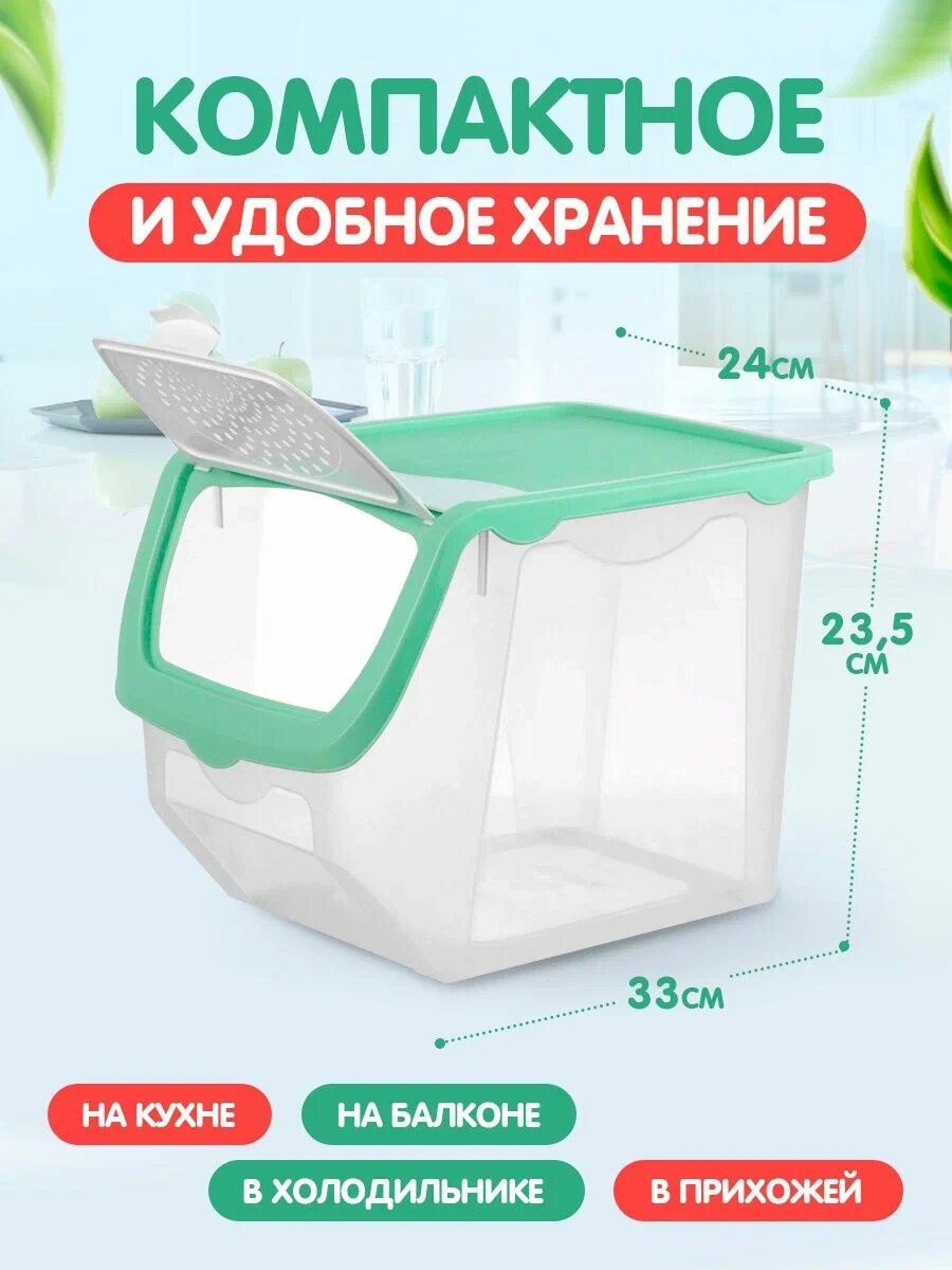 Купить Контейнер для овощей и фруктов пластиковый 12 л, прозрачный/фисташковый 506 с доставкой по всей России.
