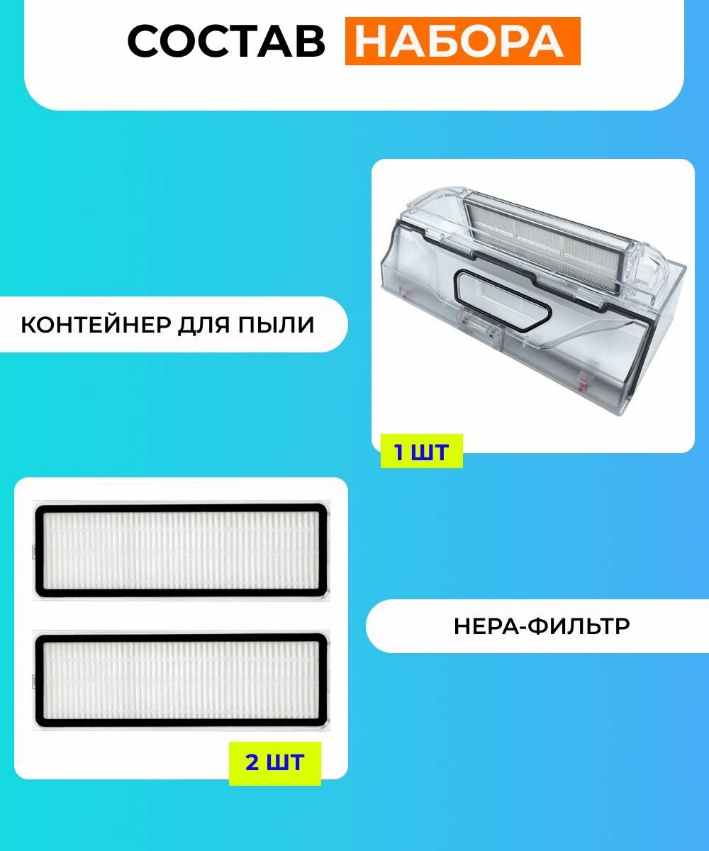 Контейнер для пыли Mijia 1C / Xiaomi Mi Robot Vacuum Mop / Dreame F9 в комплекте с 2 HEPA-фильтрами