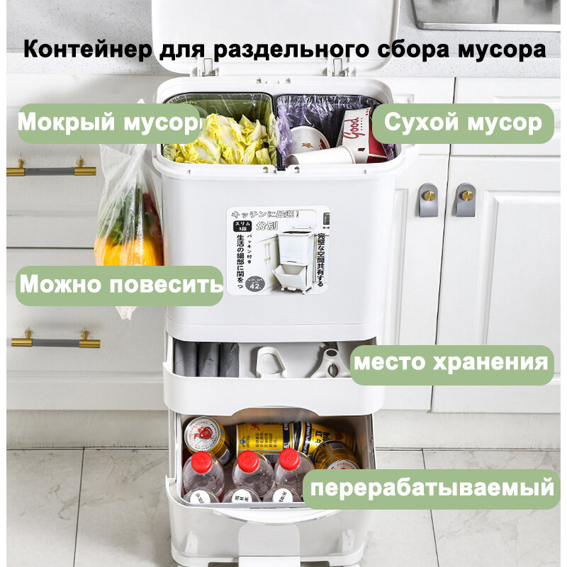 Контейнер для раздельного сбора мусора, пластиковый мусорный бак для кухни с разделением на сухие и влажные отходы,42 л: сравнение цен, характеристики, фото, актуальное наличие и цены.
