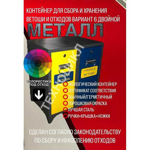 Контейнер для сбора и накопления отходов ветоши и прочих двойной 600х400х800 мм: сравнение цен, характеристики, фото, актуальное наличие и цены.