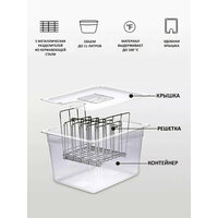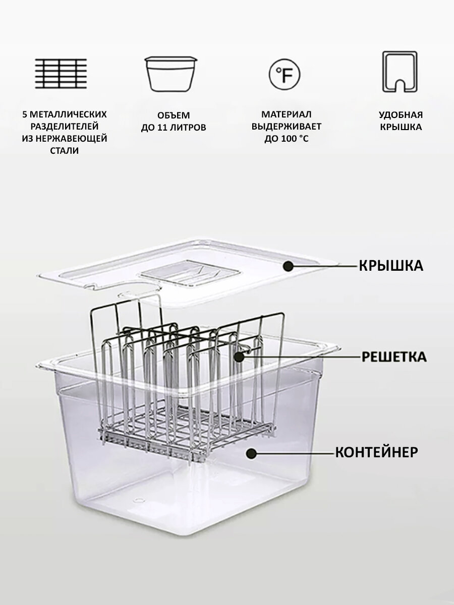 Прочный пластиковый контейнер для су-вид на 11 литров прозрачная ёмкость с крышкой и металлическими разделителями на 6 порций: сравнение цен, характеристики, фото, актуальное наличие и цены.