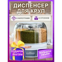 Контейнер для круп идеально впишется в интерьер вашей кухни. Диспенсер заменит вам целый набор посуды для хранения продуктов. Стеклянные баночки и вакуумные пакеты, а также наборы герметичных контейнеров , коробочки и другие емкости для хранения сухих продуктов питания больше не пригодятся. Контейнер имеет большие отсеки, каждый вместительностью до 700 гр крупы. Благодаря прозрачным стенкам отсеков и удобной кнопке - дозатору вы с легкостью отмерите необходимое количество крупы в выдвижной мерный контейнер. Органайзер для круп выполнен из качественного пластика, что исключает посторонние запахи. Контейнер для сыпучих продуктов вращается на 360 градусов для максимального комфорта в использовании. Сверху органайзер для крупы закрывается плотной крышкой, что предотвращает попадание в него влаги и пыли. В центре емкости для хранения сыпучих продуктов имеется специальный отсек, в который можно положить природные средства защиты от насекомых (чеснок, гвоздику, лавровый лист, анис). Диспенсер из полимеров - недорогой универсальный кухонный инвентарь. Органайзер выполнен из экологически чистого пищевого пластика. Контейнеры для круп подойдут как для дачи, так и для городской квартиры. Эстетичные кухонные приспособления всегда радуют глаз. Подарочный набор в виде ёмкости под сыпучие продукты отличный подарок для мамы, для любимой, для сестры, для бабушки, для подруги, для коллеги и для себя любимой, на 14 февраля, на 8 марта, на день рождения, на новоселье, на свадьбу, на Новый год и просто так. Диспенсер для круп прекрасно помогает в организации пространства. Контейнер для хранения круп можно расположить на столе или в шкафу. Крупы требуют особых условий хранения и органайзер для круп отлично справляется с этой задачей. Контейнер для крупы не скользит на поверхностях, поэтому нет необходимости ставить его на подставку или коврик. Контейнер для хранения круп обязательно порадует каждого и станет не только декоративным украшением любого дома, но и функциональным бытовым аксессуаром. Контейнер идеально подойдет даже для маленькой кухни. Мы не рекомендуем хранить в ёмкости для круп макаронные изделия, геркулес, муку, сахар, соль, соду, растворимый кофе, чай, какао, готовые смеси для выпечки или корм, т. к. механизм подачи в контейнере не предусмотрен для этого. Органайзер для круп не требует особенного ухода и чистки специальными средствами, его достаточно своевременно протирать от загрязнений. Это легко можно сделать при помощи влажной губки или ветоши, при необходимости можно добавить немного моющего средства. При желании контейнер можно промыть под струей воды. Это удобно сделать в раковине или в ванне, при помощи душа. Мы не рекомендуем мыть его в посудомоечной машине, так как это может нарушить внешний вид контейнера или нанести повреждения. Органайзер для круп приходит в собранном виде. Он надежно упакован в двойную пупырчатую пленку, и установлен в картонный ящик, который в свою очередь дополнительно защищена бопп пакетом. Все это обеспечит целостность диспенсера для сыпучих продуктов. Товары для кухни всегда пригодятся в быту. Контейнер для круп купить вы сможете у нас по привлекательной цене, и он обязательно станет вашим любимым кухонным помощником.