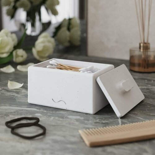 Купить Контейнер для ватных палочек, органайзер для мелочей в ваную Emily , 12×8 см, с крышкой, бетон, белый матовый с доставкой по всей России. Контейнер для ватных палочек, органайзер для мелочей в ваную Emily , 12×8 см, с крышкой, бетон, белый матовый: сравнение цен, характеристики, фото, актуальное наличие и цены.