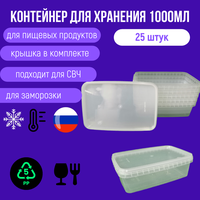 Контейнер для заморозки и СВЧ пластиковый, 25 штук, объем 1 литр