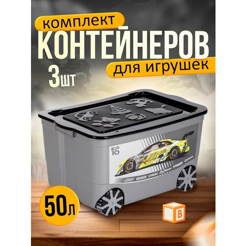 Контейнер elfplast «Kids Box» для хранения игрушек на колесах с крышкой пластиковый 50 л 3 шт, (темно-серый/черный) 449: сравнение цен, характеристики, фото, актуальное наличие и цены.