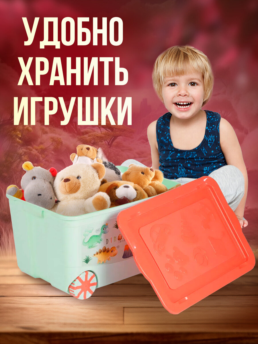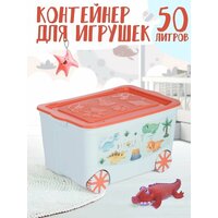 Купить Контейнер elfplast «Kids Box» для хранения игрушек на колесах с крышкой пластиковый 50 л, (бирюзовый/коралловый) 449 с доставкой по всей России.