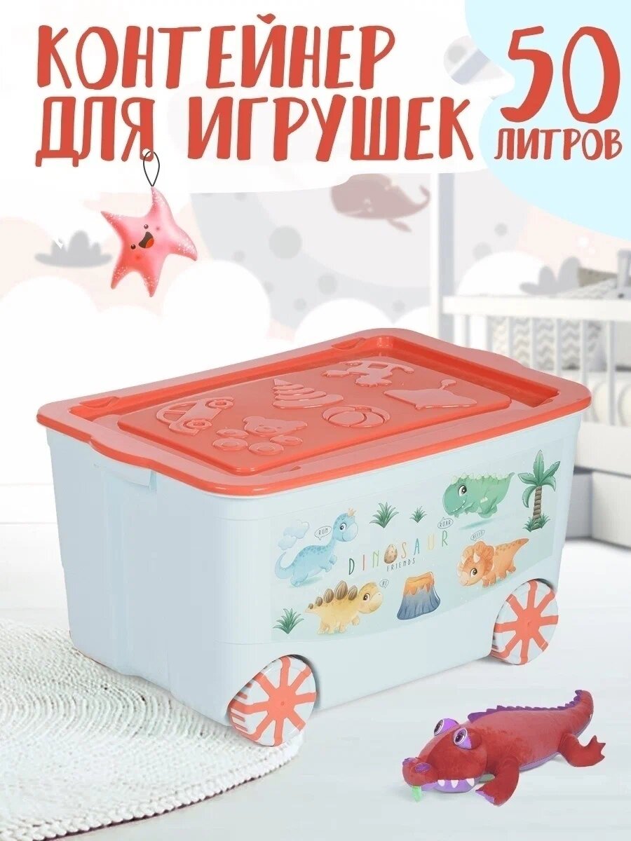 Контейнер elfplast «Kids Box» для хранения игрушек на колесах с крышкой пластиковый 50 л, (бирюзовый/коралловый) 449: сравнение цен, характеристики, фото, актуальное наличие и цены.