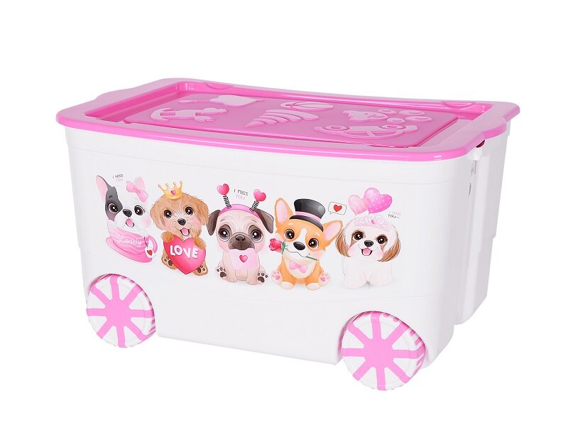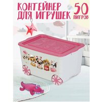 Купить Контейнер elfplast «Kids Box» для хранения игрушек на колесах с крышкой пластиковый, (белый/розовый) 449 с доставкой по всей России.