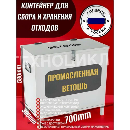 Применение: Используется в производственных предприятиях, автосервисах и на объектах, где важно безопасно хранить ветошь до утилизации. Экологические преимущества: