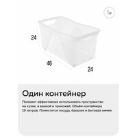 В один контейнер хозяйственный можно сложить сковородки и крышки, все консервы и бутылки с маслом. В ванной его используют как органайзер для бытовой химии: порошков и средств для уборки. Благодаря универсальной форме изделие подходит как органайзер для кухни и как элемент системы органайзеры для хранения вещей.