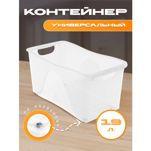 Универсальный хозяйственный контейнер «Макс изготовлен из прозрачного полипропилена. Контейнер прочный, дно и бортик усилили рёбрами жёсткости-поэтому контейнер можно наполнить доверху. У контейнера имеются боковые ручки, за них легко переносить контейнер, или выдвигать из полочного пространства. Контейнер легко перемещается, у него есть удобные колесики и ручки с двух сторон. Контейнер поместится под раковиной и на нижней полке в шкафу. Подойдет для хранения вещей, посуды, пищевых продуктов и напитков, бытовой химии, инструмента. В ряд можно поставить несколько контейнеров. Размер : 46х24х23,5 см (ДхШхВ) Цвет: прозрачный. Объем - 19 литров.