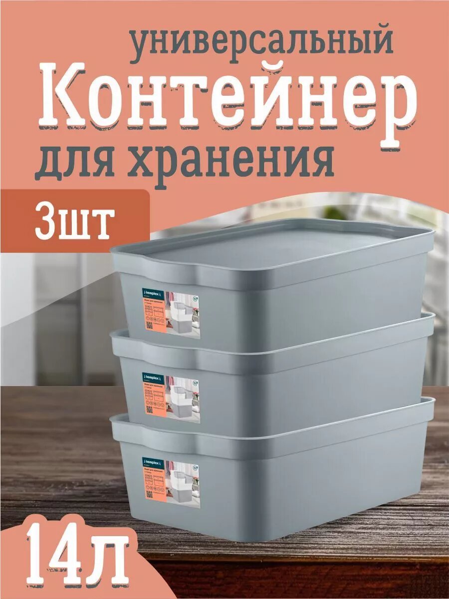 Контейнер Keeplex для хранения пластиковый с крышкой 14 л 3 шт, (серый топаз) 3504: сравнение цен, характеристики, фото, актуальное наличие и цены.