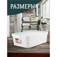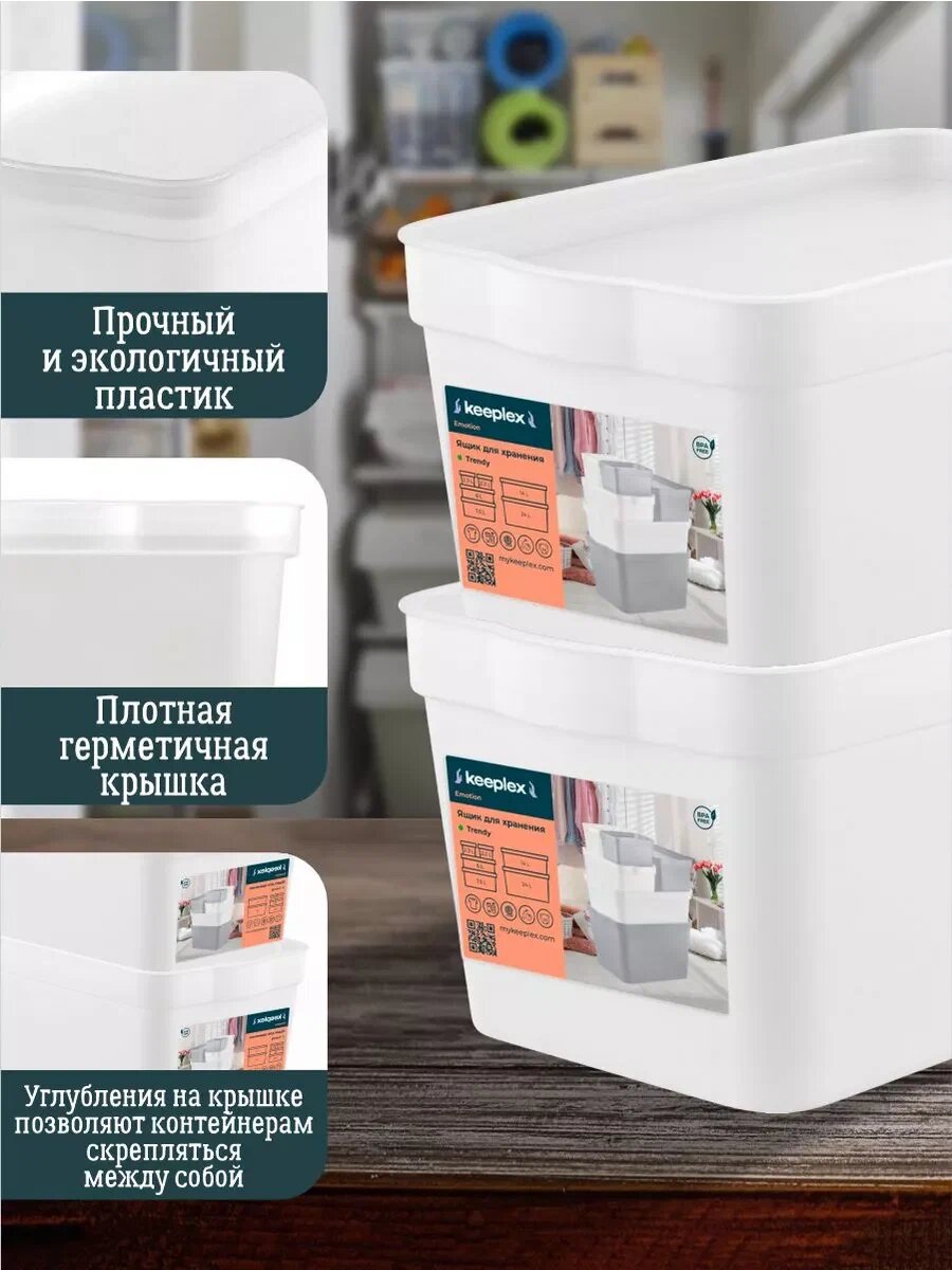 Модель "Trendy" бренда Keeplex - универсальный контейнер, который идеально подходит для хранения различных вещей и предметов домашнего обихода. Эта емкость пригодится для складирования игрушек и канцелярии, сезонной обуви и одежды, постельного белья и инструментов, мелочей на кухне и продуктов питания, туалетных принадлежностей и бытовой химии. Органайзер свободно, но плотно закрывается плоской крышкой без защелкивания и без усилий открывается одной рукой. Эргономичные ручки-выступы на корпусе комфортны для захвата и транспортировки. Матовое soft-touch покрытие приятно на ощупь. Сквозь полупрозрачные стенки просматривается содержимое ящика, что облегчает поиск нужного на стеллажах и полках в гардеробной или шкафу. Материал изделия - прочный и легкий пластик не содержит вредных примесей, безопасен для здоровья, неприхотлив в уходе и долговечен. Компактный короб - незаменимый помощник в организации пространства в доме, на даче или в гараже. В магазине Тутси найдете и другие хозяйственные товары, подарки для близких или оригинальный аксессуар для декора. Желаем удачных покупок!