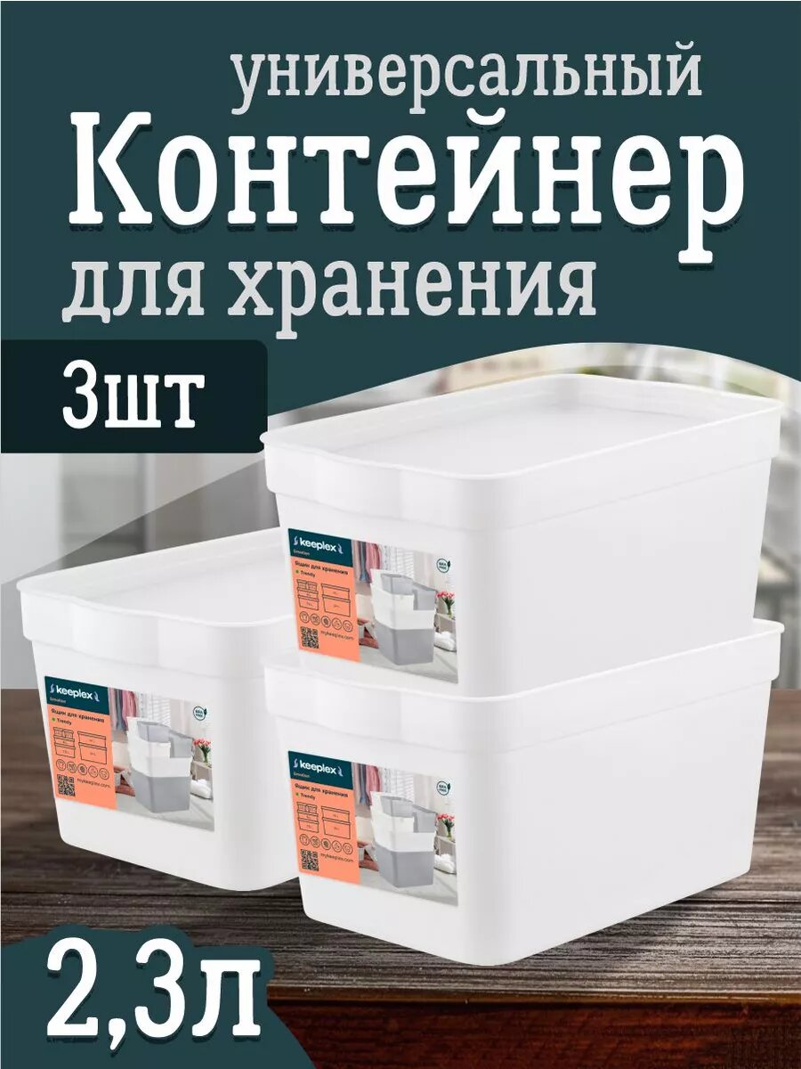 Контейнер Keeplex для хранения пластиковый с крышкой 2,3 л 3 шт, (белый) 3501: сравнение цен, характеристики, фото, актуальное наличие и цены.