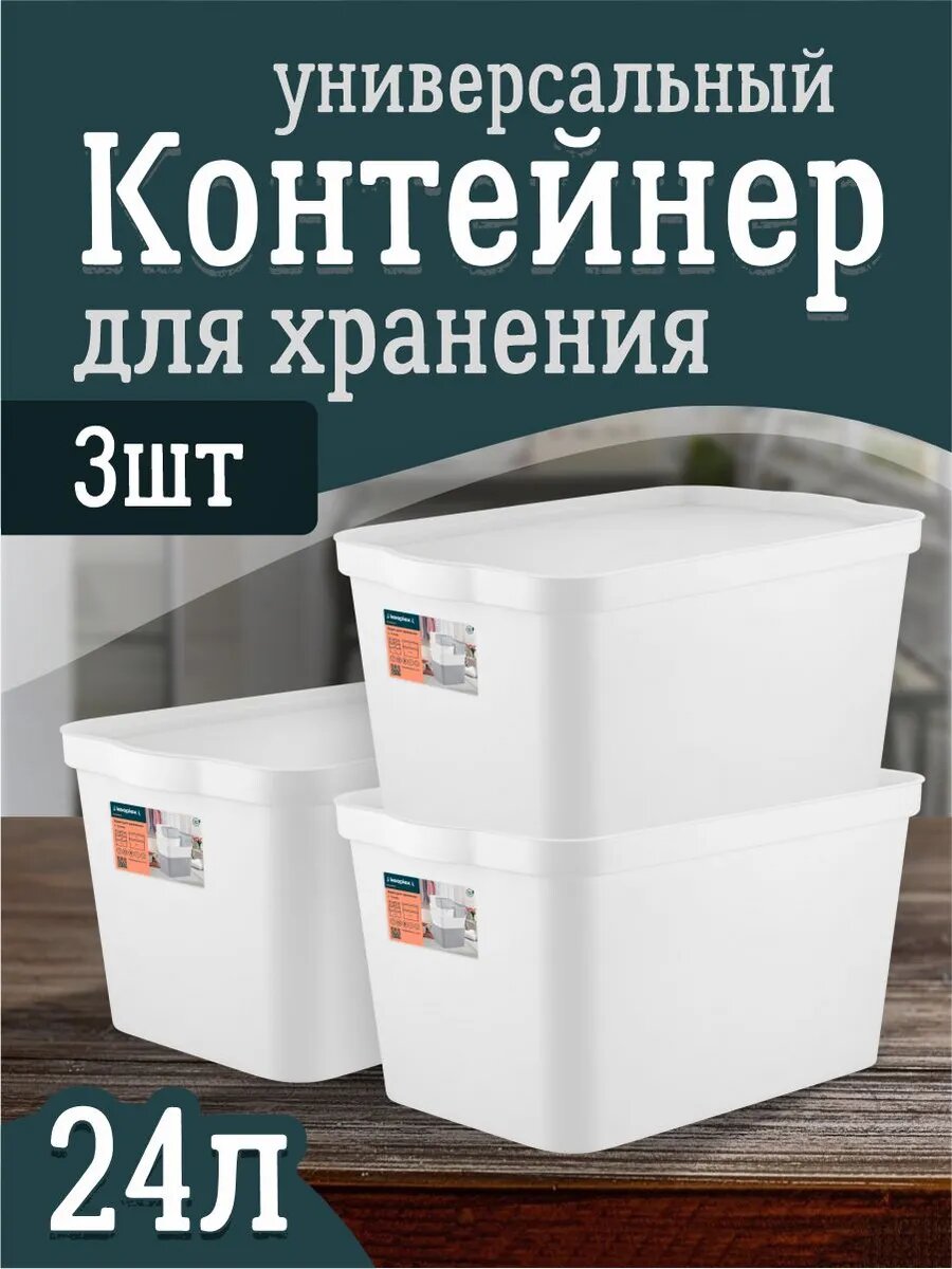 Контейнер Keeplex для хранения пластиковый с крышкой 24 л 3 шт, (белый) 3505: сравнение цен, характеристики, фото, актуальное наличие и цены.