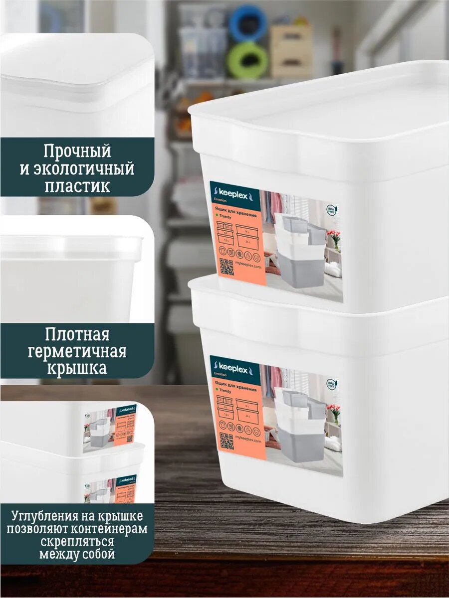 Купить Контейнер Keeplex для хранения пластиковый с крышкой 24 л 3 шт, (белый) 3505 с доставкой по всей России.