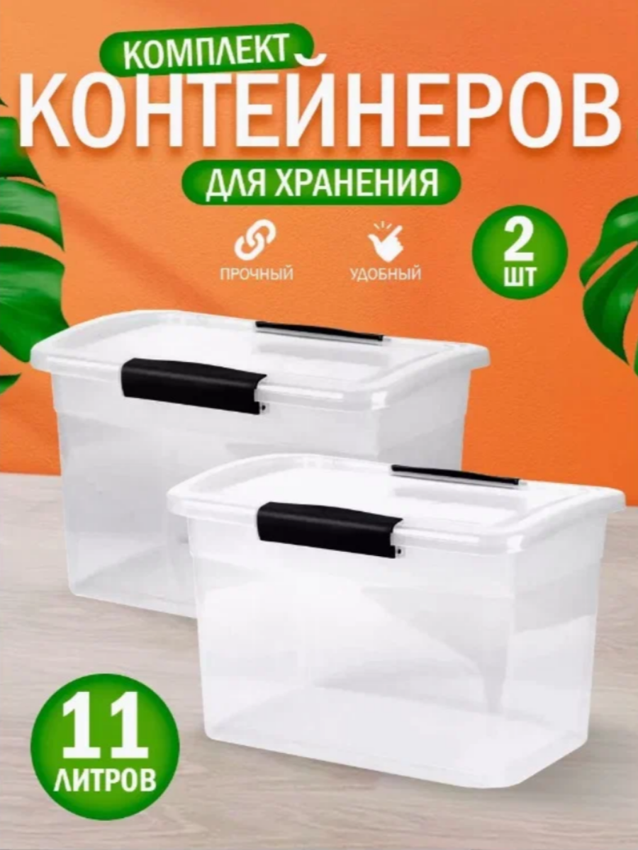 Купить Контейнер Keeplex Vision для хранения пластиковый с крышкой 11 л 2 шт, (прозрачный кристалл) 2514 с доставкой по всей России.