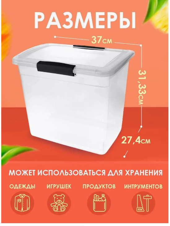 Купить Контейнер Keeplex Vision для хранения пластиковый с крышкой 20 л, (прозрачный кристалл) 2516 с доставкой по всей России.
