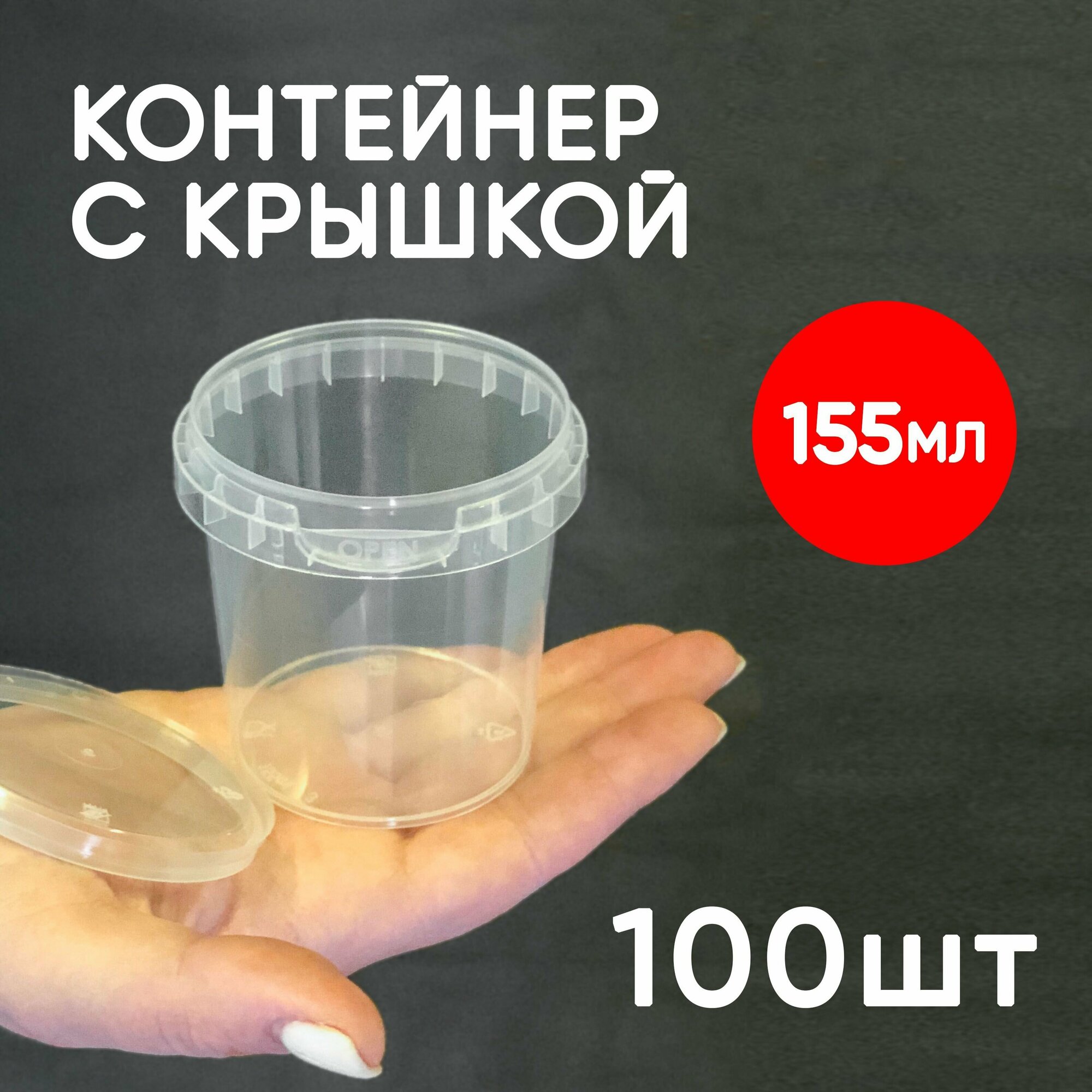 Контейнер маленький пластиковый 155 мл, набор из 100 шт, одноразовый, для хранения еды, пищевых продуктов и заморозки, круглый с герметичной крышкой: сравнение цен, характеристики, фото, актуальное наличие и цены.