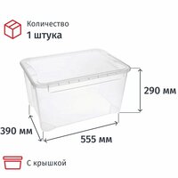 Контейнер универсальный L, 555x390x290 мм, с крышкой, 49л Универсальный ящик поможет рационально организовать пространство и поддерживать идеальный порядок. Крышка плотно фиксируется и защищает содержимое от пыли и влаги. Через прозрачные корпус и крышку ящика видно его содержимое. Несколько ящиков (включая другие размеры линейки "Кристалл ") хорошо штабелируются. Конструкция ящиков позволяет комбинировать их друг с другом для оптимального использования пространства. Ящик подходит для хранения продуктов, офисных принадлежностей, игрушек, постельного белья, сезонных вещей, одежды и обуви, предметов творчества, повседневных мелочей и т. д. Ящик не имеет острых углов, поэтому его можно использовать даже в детской комнате. Производится из 100% перерабатываемого пищевого полипропилена, не содержит бисфенола А.