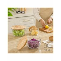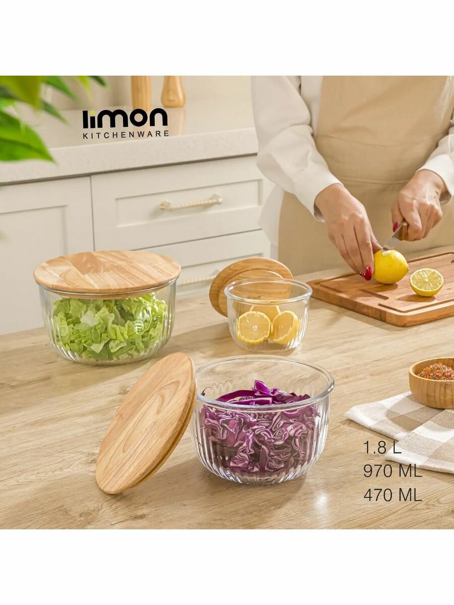 Представляем стильный набор из трех контейнеров от известного бренда LiMON. Этот набор является идеальным выбором для тех, кто ценит качество и удобство в использовании. Контейнеры изготовлены из жаропрочного боросиликатного стекла и крышек из натурального дерева тропического дерева гевеи. Они прекрасно подходят для приготовления, хранения, сервировки и даже украшения стола. Благодаря стильному дизайну и эргономике, эти контейнеры станут прекрасным дополнением к вашей кухне и добавят ей уют и тепло. Кроме того, они отличаются отличным качеством и долговечностью, что делает их идеальным выбором для каждодневного использования. Независимо от того, готовите ли вы пищу в духовке или микроволновой печи, храните ее в холодильнике или подаете на стол, эти контейнеры будут незаменимы. В набор входят контейнеры объемом 450, 2250 и 1100 миллилитров, что позволяет выбрать оптимальный размер для ваших нужд. Контейнеры легко моются как вручную, так и в посудомоечной машине, а деревянные крышки не рекомендуется мыть в посудомоечной машине. Этот набор станет отличным подарком для всех, кто любит готовить и заботится о своем здоровье. Заказывайте прямо сейчас и наслаждайтесь удобством и качеством этих контейнеров!