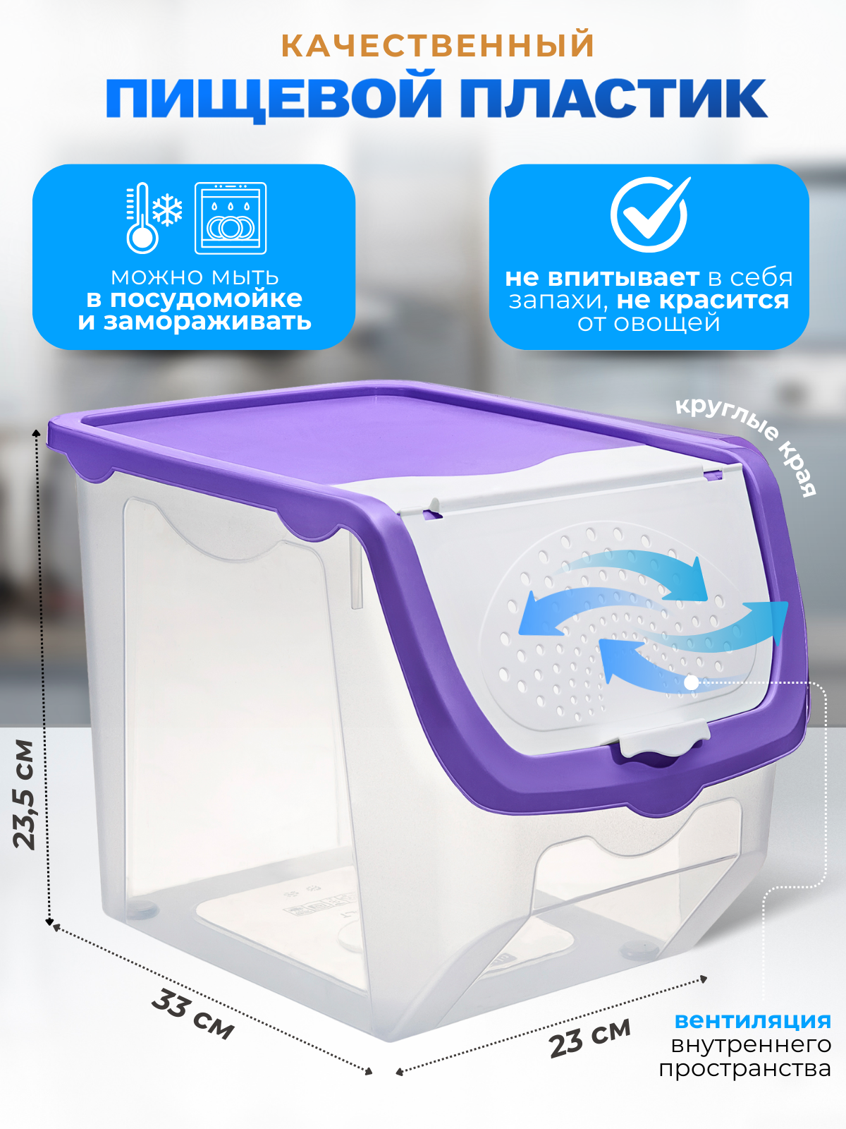 Контейнер пластиковый для хранения овощей и фруктов объем 12л. цвет-прозрачный/фиолетовый .: сравнение цен, характеристики, фото, актуальное наличие и цены.