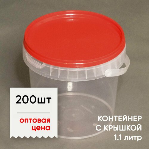 Контейнеры (ведерко) с ручкой и крышкой 1100 мл (1.1 литр) для транспортировки и хранения пищевых продуктов.
