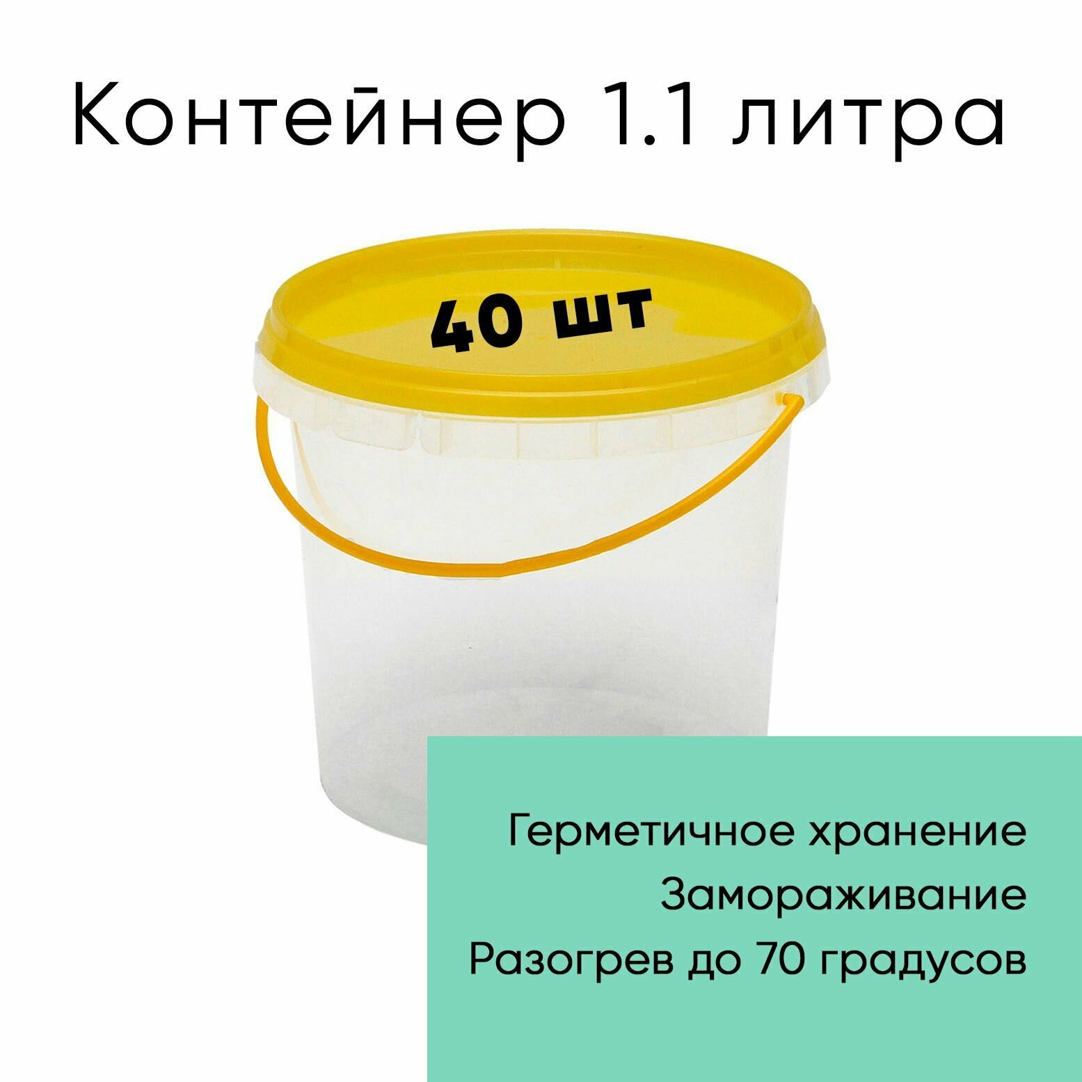 Контейнер пластиковый ведро 1,1 литр (1100 мл) набор из 40 шт, одноразовый, для хранения еды, пищевых продуктов и заморозки, круглый с желтой герметичной крышкой и ручкой: сравнение цен, характеристики, фото, актуальное наличие и цены.
