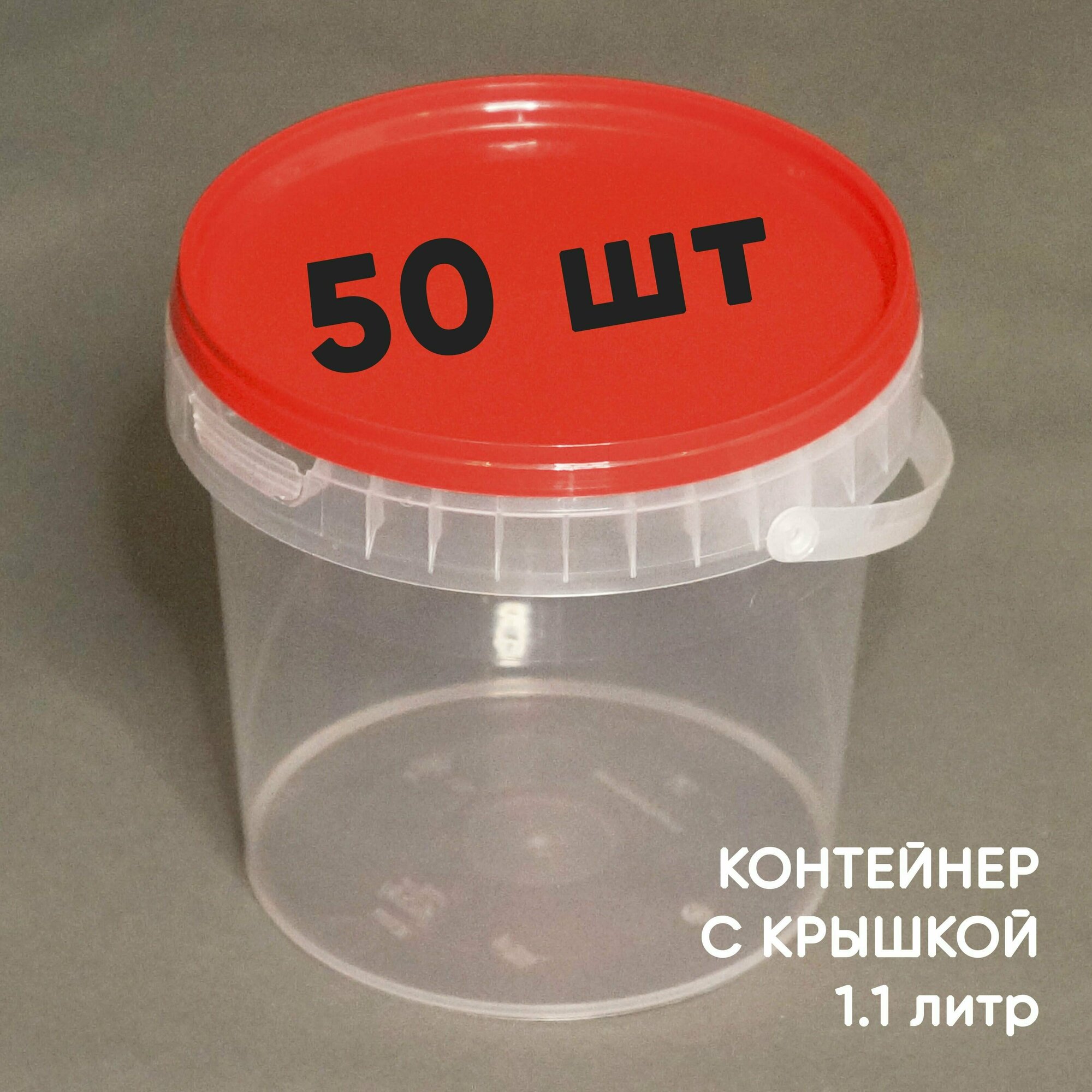 Контейнер пластиковый ведро 1,1 литр (1100 мл) набор из 50 шт, одноразовый, для хранения еды, пищевых продуктов и заморозки, круглый с красной герметичной крышкой и ручкой: сравнение цен, характеристики, фото, актуальное наличие и цены.