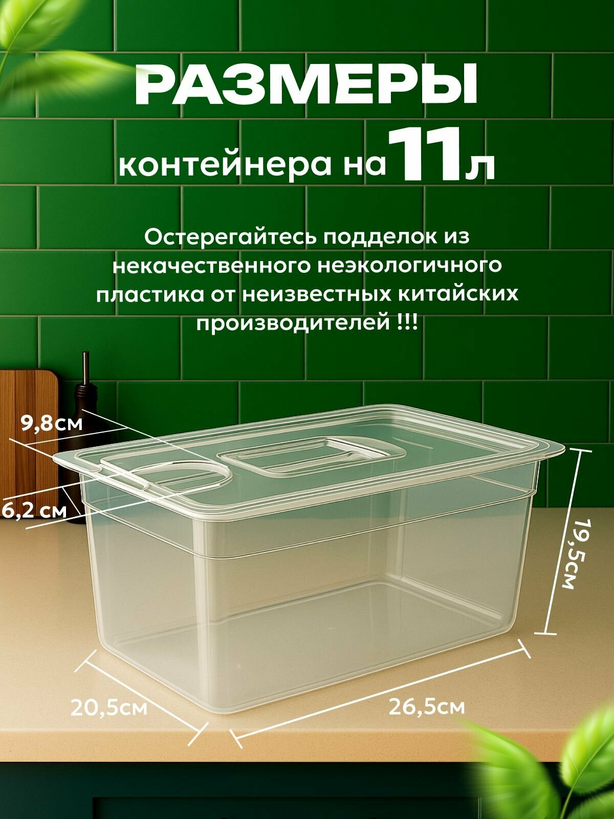 Компактные размеры (200x265x325 мм) и легкий вес (700 г) делают контейнер удобным для хранения и перемещения. Простота очистки и герметичная крышка делают его незаменимым аксессуаром как для домашней кухни, так и для профессиональных задач.