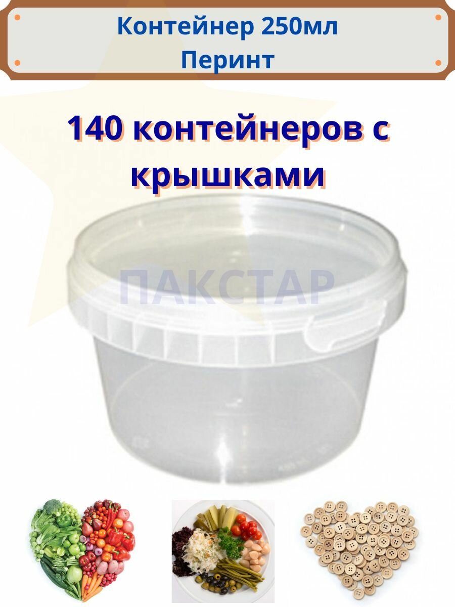 Контейнер с крышками 250 мл 140 штук, d-96 мм, h-56 мм, полупрозрачный «Перинт»: сравнение цен, характеристики, фото, актуальное наличие и цены.