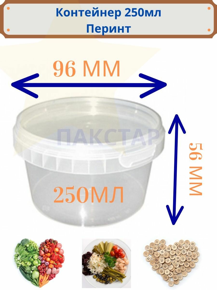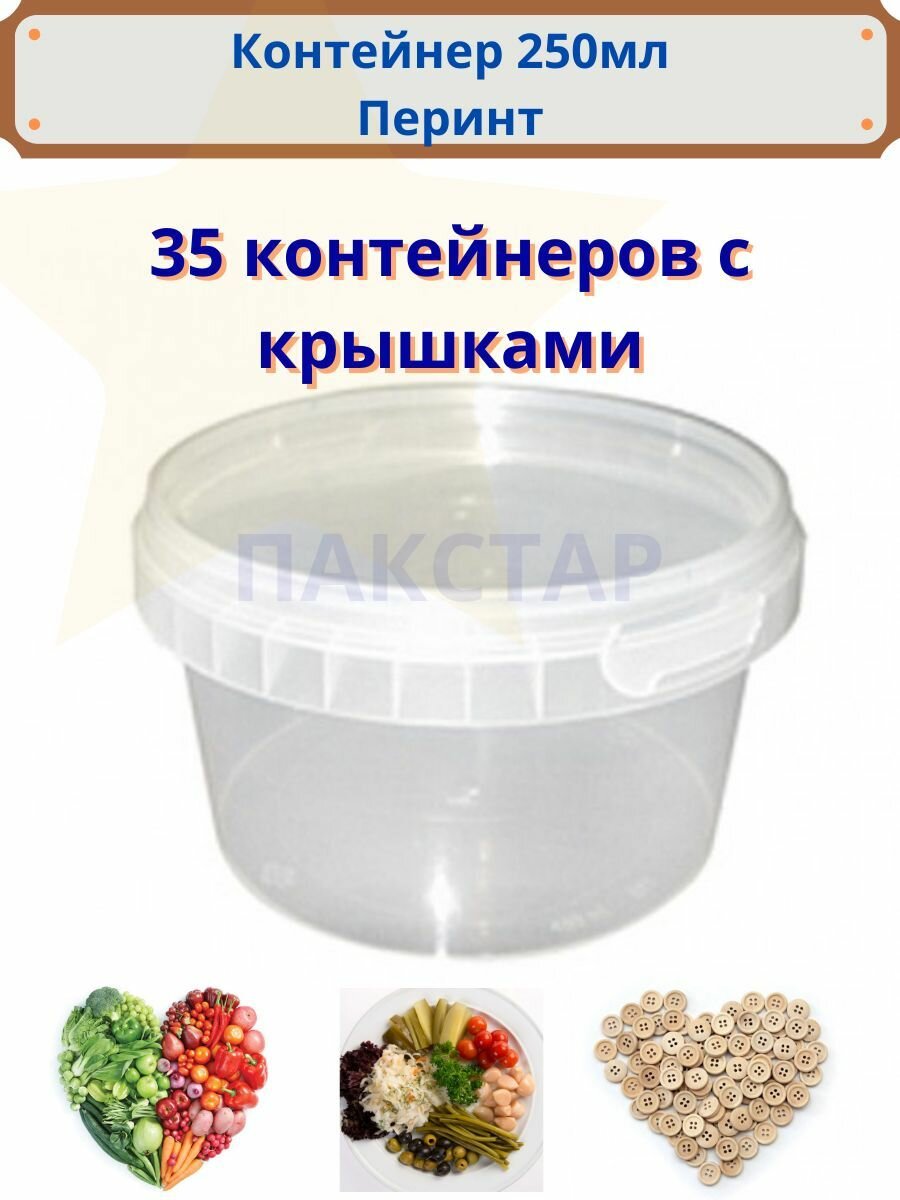 Контейнер с крышками 250 мл 35 штук, d-96 мм, h-56 мм, полупрозрачный «Перинт»: сравнение цен, характеристики, фото, актуальное наличие и цены.