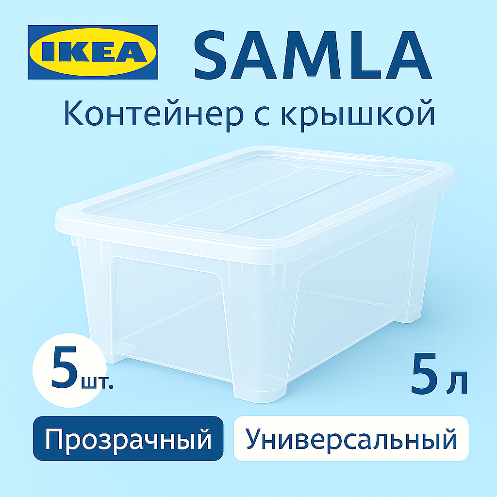 Контейнер с крышкой 5л 5 шт, 28*19*14см, прозрачный. Икеа Самла, Ikea Samla: сравнение цен, характеристики, фото, актуальное наличие и цены.
