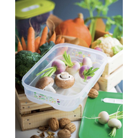 • Контейнеры состоят из прозрачного основания, крышки со слайдером, оснащенным системой вентиляции воздуха. • Специальная система циркуляции воздуха, заключающаяся в слайдере на крышке, помогает регулировать необходимую атмосферу в контейнере, что позволяет продуктам дольше оставаться свежими • Слайдер может быть установлен в 3 позициях: открытый наполовину, открытый или закрытый. • Решетка на основании обеспечивает циркуляцию воздуха вокруг продуктов. • Инструкция-стикер на стенках контейнера поможет выбрать оптимальный режим хранения каждого продукта •Благодаря прозрачному основанию, содержимое контейнера хорошо просматривается •Идеален для брюссельской капусты, спаржи, редиса, свежей зелени, бобов, зеленого лука, черешни, вишни и т. д.