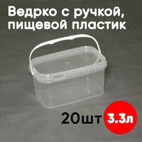 Контейнер пластиковый ведро 3,3 литр (3300 мл), набор 20шт, для хранения еды, пищевых продуктов и заморозки, прямоугольный с герметичной крышкой и ручкой: сравнение цен, характеристики, фото, актуальное наличие и цены.