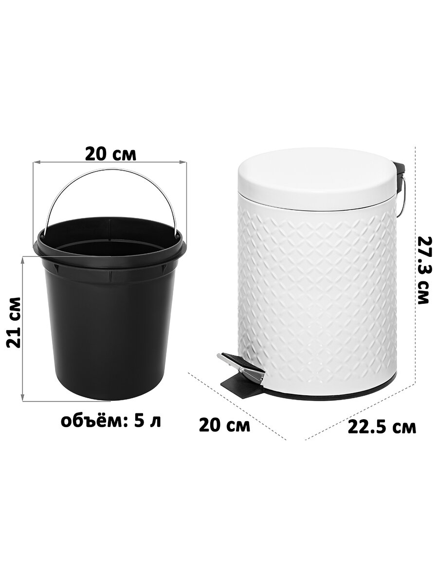 Контейнер, ведро для мусора 5 л 22,5х20х27,3 см EL Casa Белый с педалью + ведро: сравнение цен, характеристики, фото, актуальное наличие и цены.