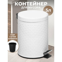 Купить Контейнер, ведро для мусора 5 л 22,5х20х27,3 см EL Casa Белый с педалью + ведро с доставкой по всей России.
